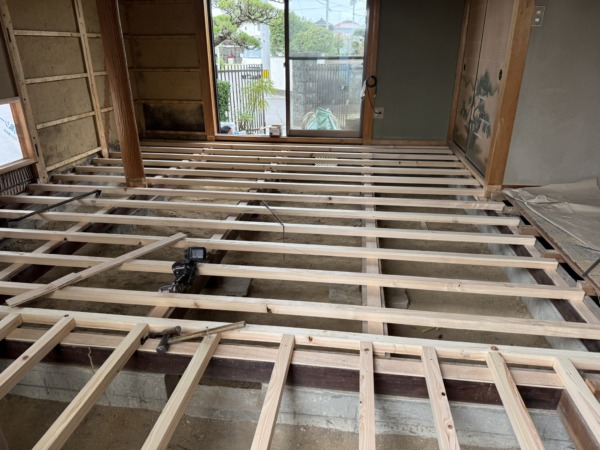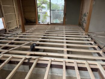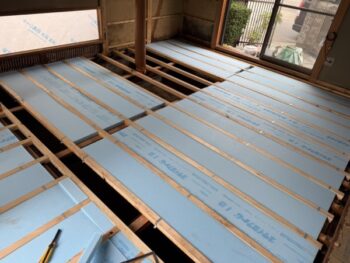▲施工中 縁側部分も取り込み 1つの洋室に。 断熱材もしっかり入れて 寒さ暑さ対策もバッチリです。